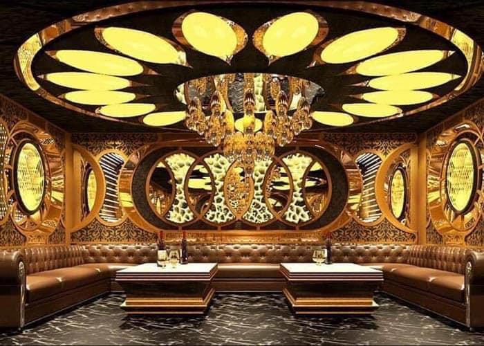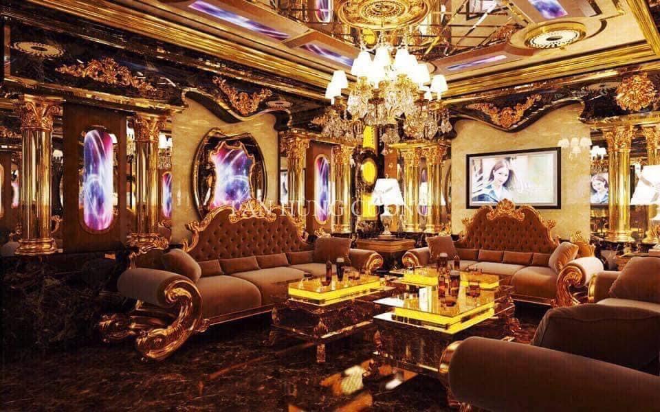Phòng hát tân cổ điển, sang trọng: 4 chiều không gian được bao phủ bởi gạch Granite phủ men, có bề mặt bóng kính, màu trầm vân đá. Những tấm gương cổ điển xuất hiện rải rác ở các cánh tường chính là điểm nhấn độc đáo nhất trong tổng không gian phòng hát.